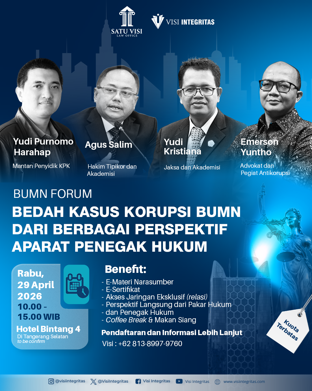 Narasumber dan Tema:1. Emerson Yuntho (Pengamat Hukum & Pegiat Antikorupsi)Perspektif: Pengamat dan Pegiat Antikorupsi